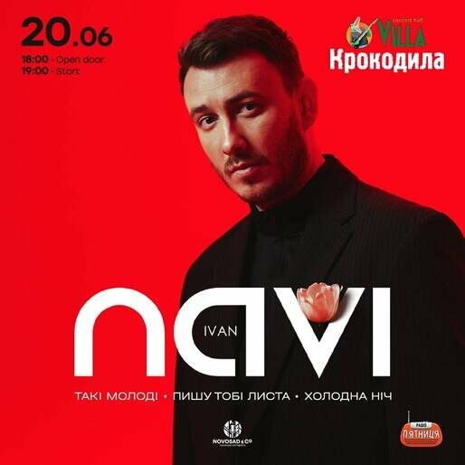 20 червня о 18:00 у Villa Krokodila Concert Hall відомий український співак Ivan NAVI проведе сольний концерт, на якому презентує свою найкращу програму.