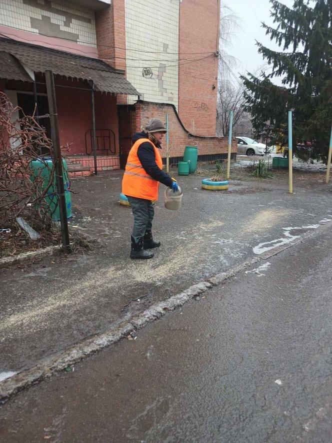 260 працівників даного підприємства займаються очищенням прибудинкових територій від льоду та посипанням пішохідних доріжок і підходів до під’їздів.