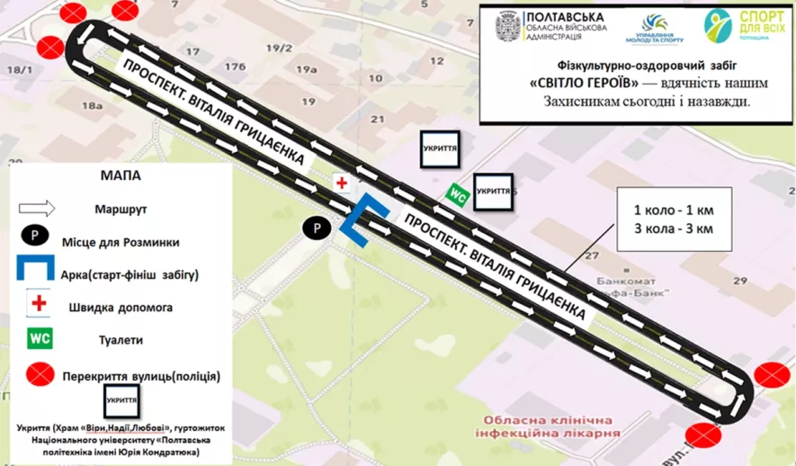 У Полтаві 22 листопада обмежать рух через забіг на підтримку Захисників