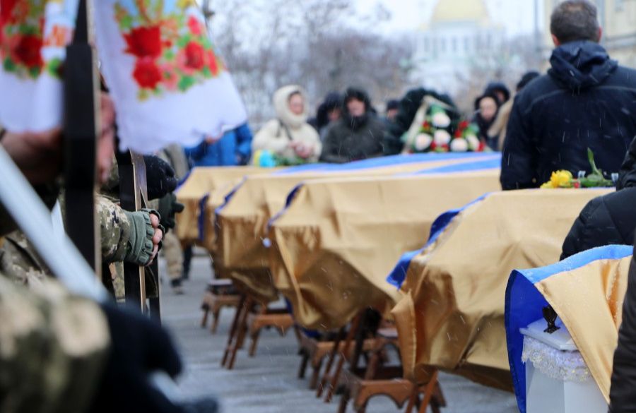 5 лютого біля Свято-Успенського кафедрального собору відбулося прощання з родинами Запішніх та Яворських, які стали жертвами російського ракетного удару по житловому багатоповерховому будинку на Браїлках 1 лютого.