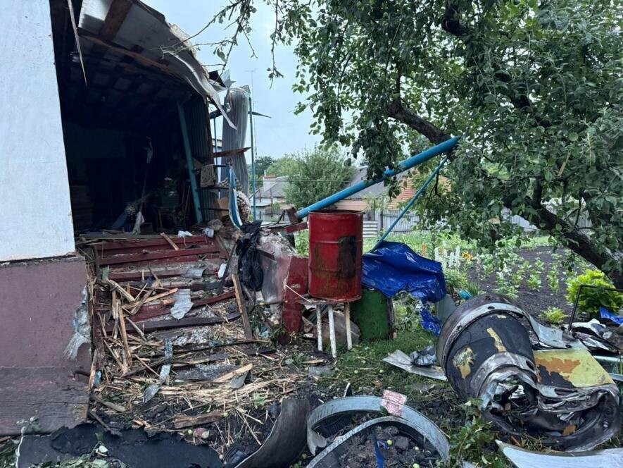 Внаслідок падіння уламків у Полтавському районі сталося загорання на території одного з підприємств. Пожежу швидко ліквідували. Також пошкоджено прибудову до житлового будинку. На щастя, обійшлося без постраждалих.