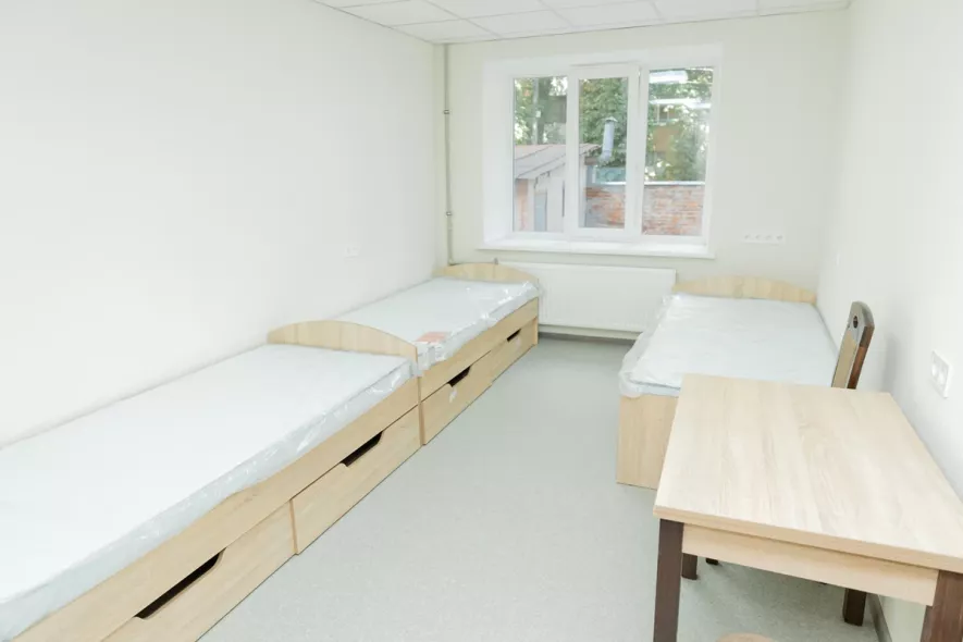Гуртожиток повністю укомплектовано новими меблями та технікою: встановлено сучасні електроплити, ліжка з матрацами, столи, стільці та шафи.