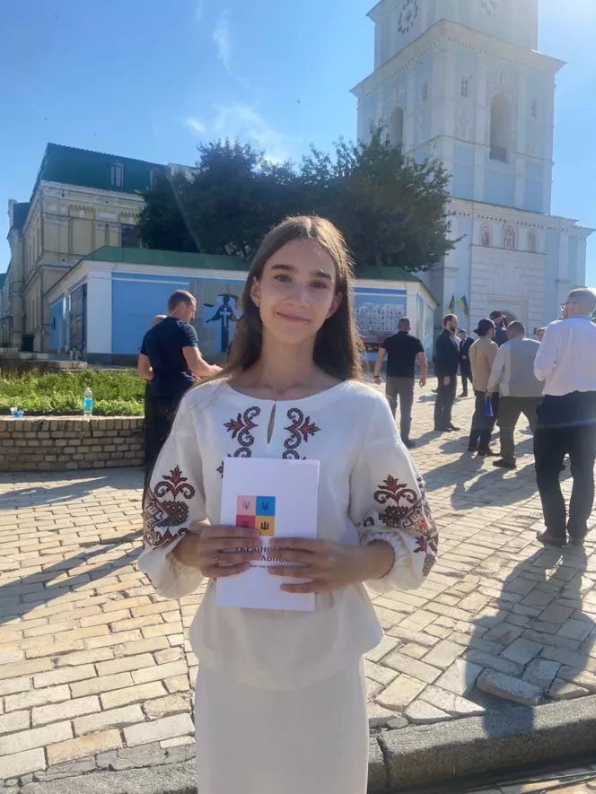 У День Української Державності восьмикласниця з Полтави, що навчається у Науковому ліцеї №3 і є вихованкою Полтавської обласної Малої академії наук, отримала паспорт громадянина України прямо з рук Президента Володимира Зеленського.